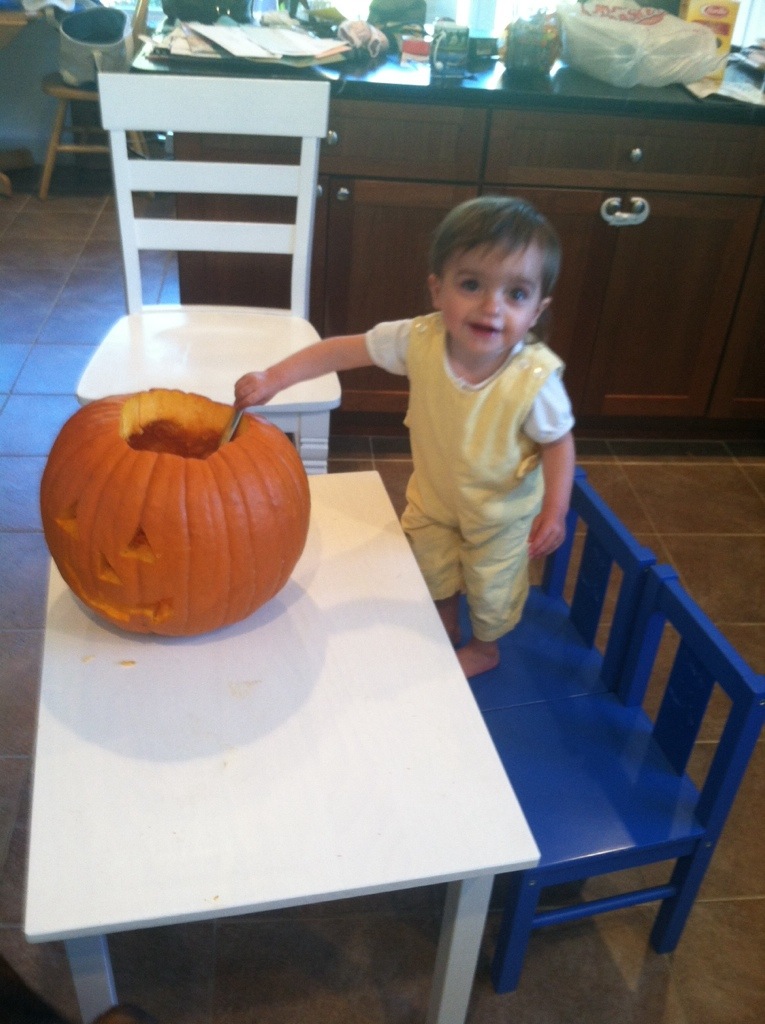 Jack and Olivia helped carved a pumpkin and sort pumpkin seeds.