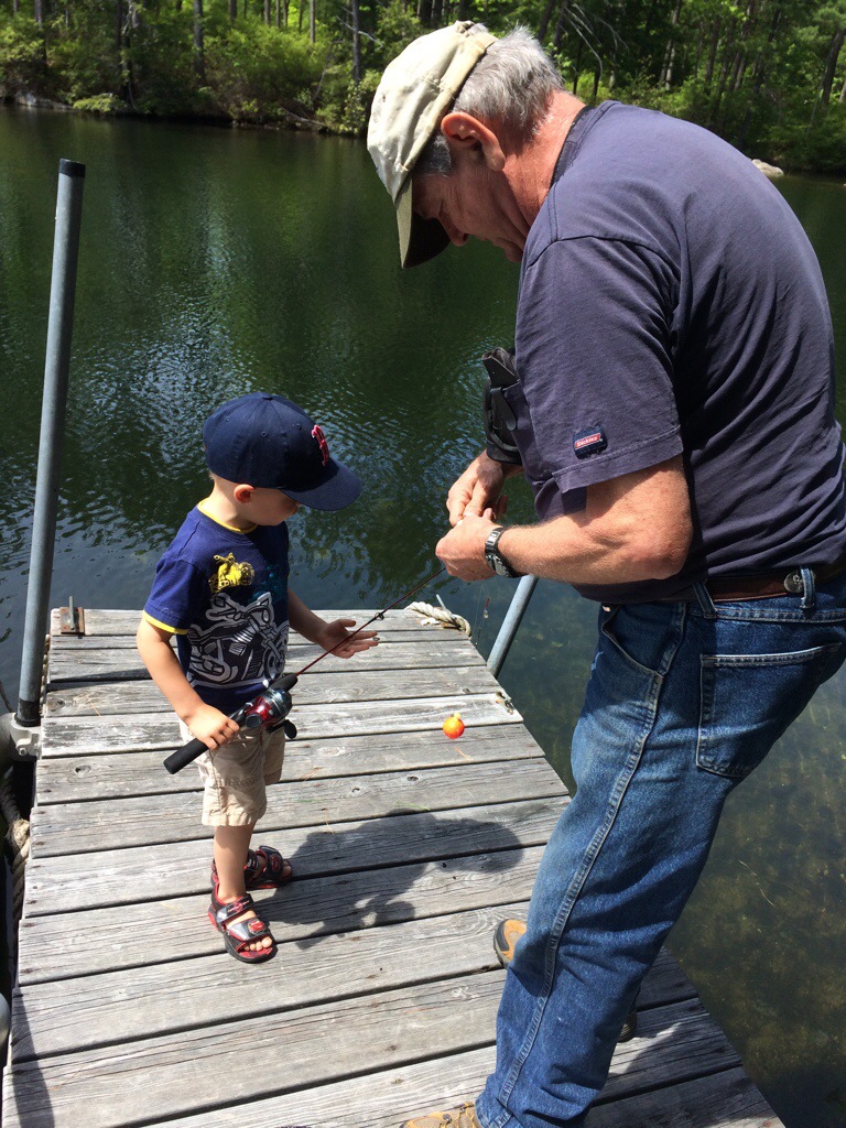 Jack and Olivia went to Grammy and Grandpa Russell’s house and Jack went fishing.