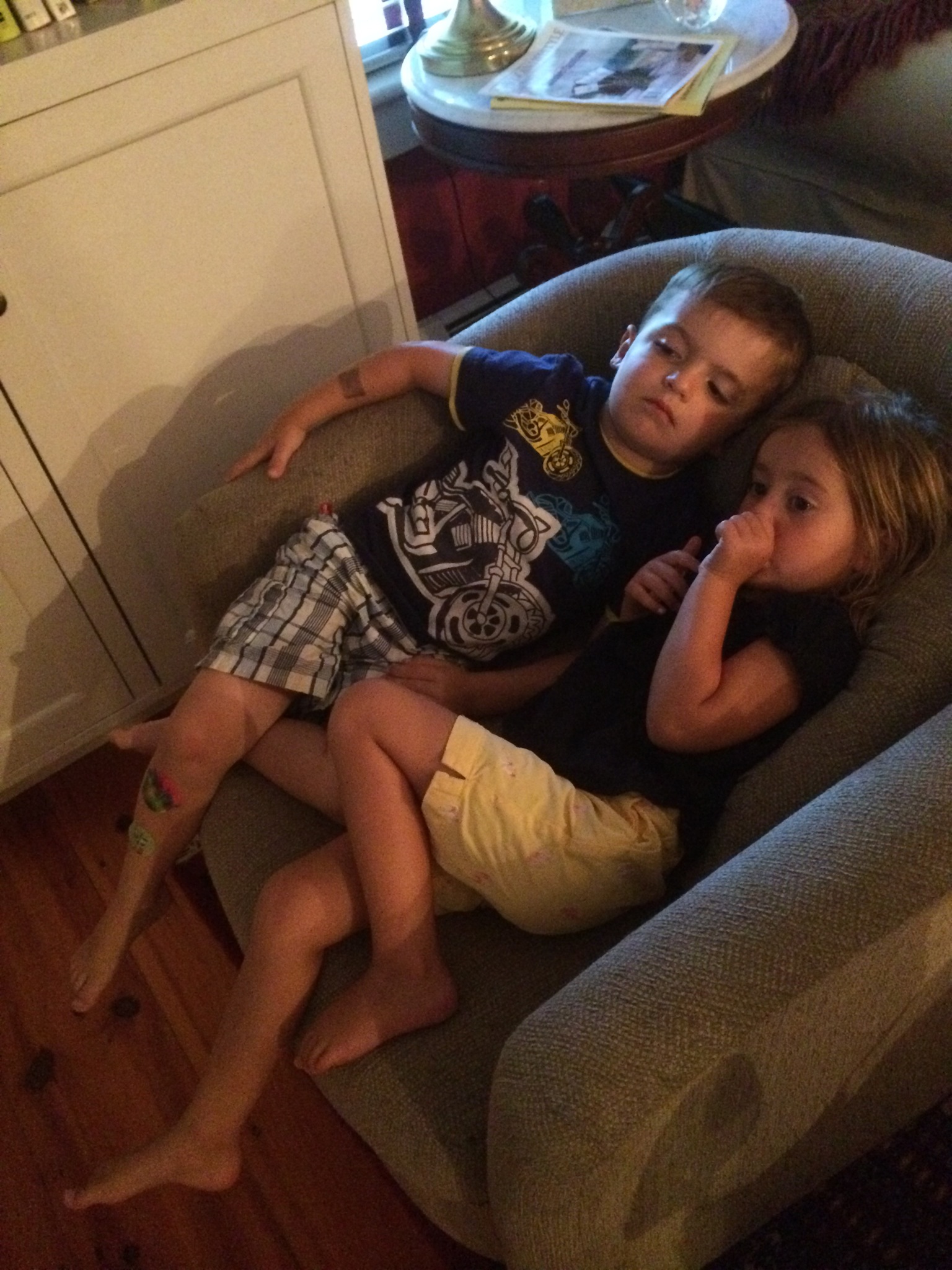 Lily and Jack snuggling after serious playtime.