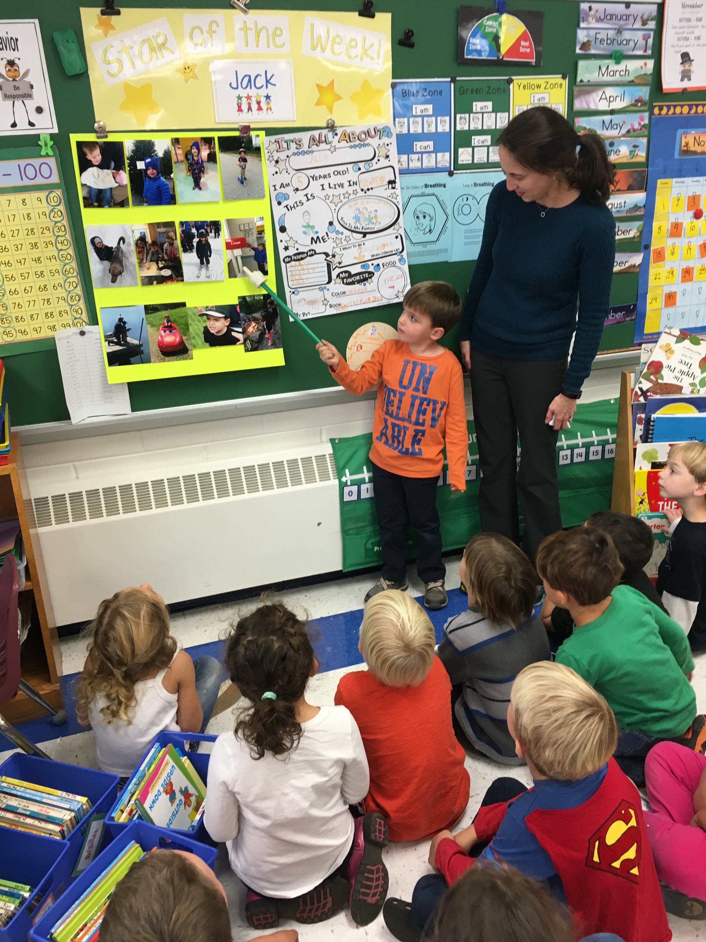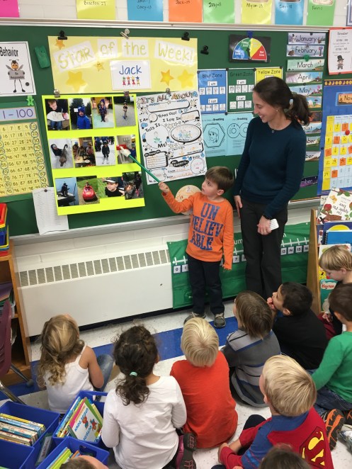 Jack is Star of the Week and talked to his class about some pictures he brought in.
